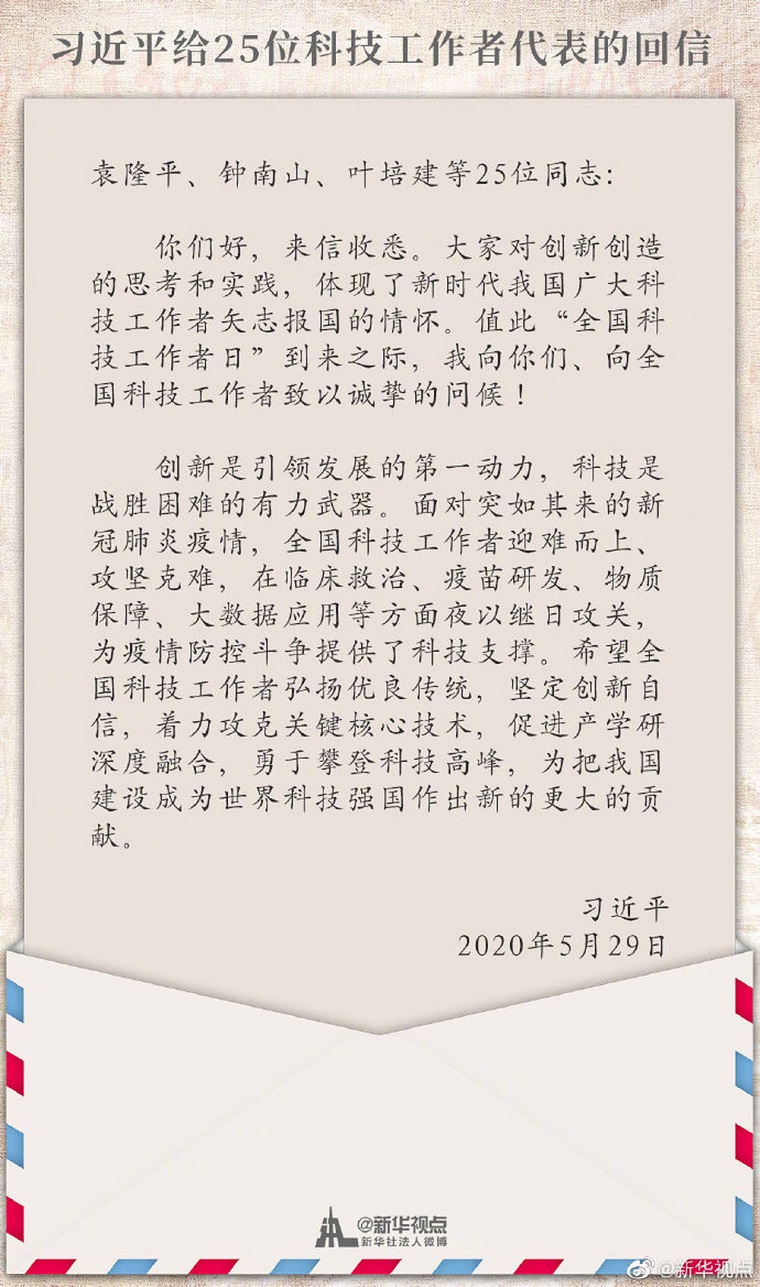 5月29日,在第四個(gè)“全國(guó)科技工作者日”到來(lái)之際,譚旭光等25位科技工作者代表收到了習(xí)近平總書(shū)記的回信。