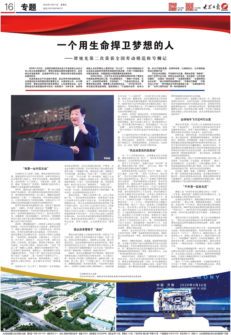 譚旭光在奮斗中追逐夢(mèng)想,曾三次與死神擦肩而過?!拔矣肋h(yuǎn)無法改變事業(yè)比生命更重要的初衷”,譚旭光就是這樣帶領(lǐng)濰柴在持續(xù)的造夢(mèng)、追夢(mèng)、圓夢(mèng)中不斷跨越。