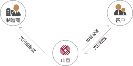 山重租賃從制造商或經(jīng)銷商處購(gòu)買物流設(shè)備,出租給客戶使用;山重租賃向工廠或經(jīng)銷商支付設(shè)備款,客戶按期向山重租賃支付租金。